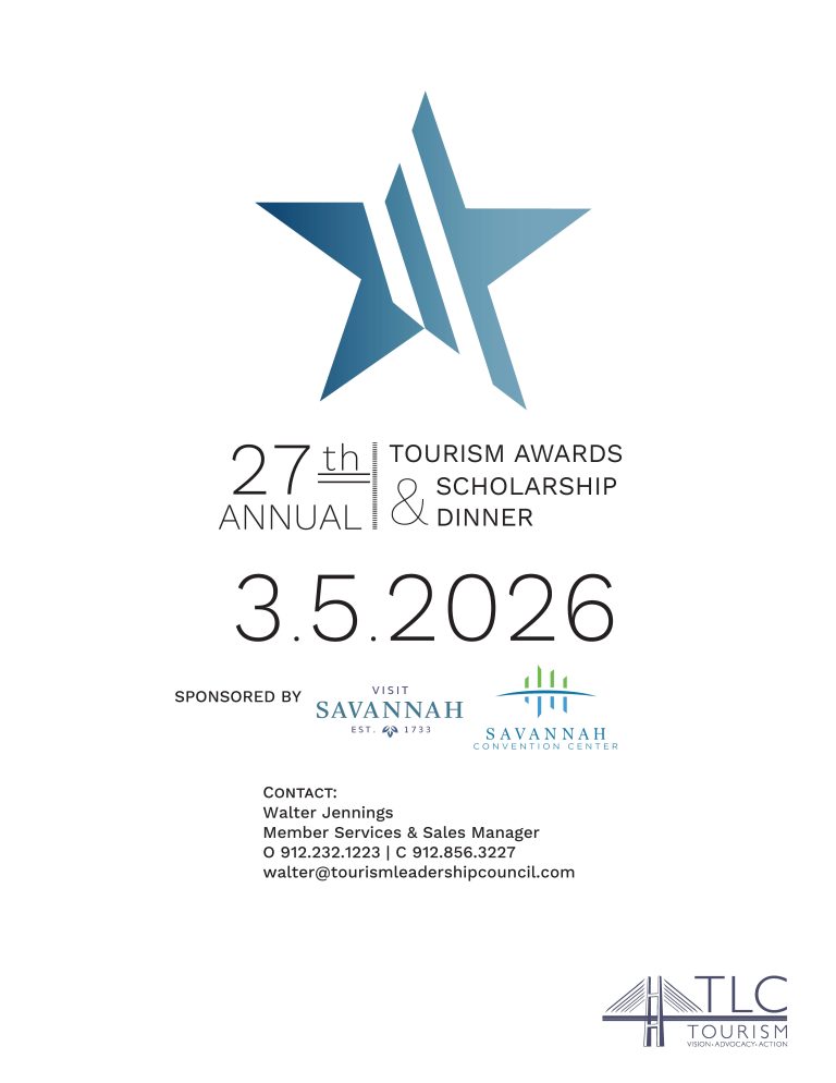 If you would like to reserve your table, or tables, for our upcoming Tourism Awards & Scholarship Dinner, you can do so here. You can choose between our Platinum, Gold, and Silver level tables. To see what is included with each sponsorship level, please view our Sponsorship Packet above.
